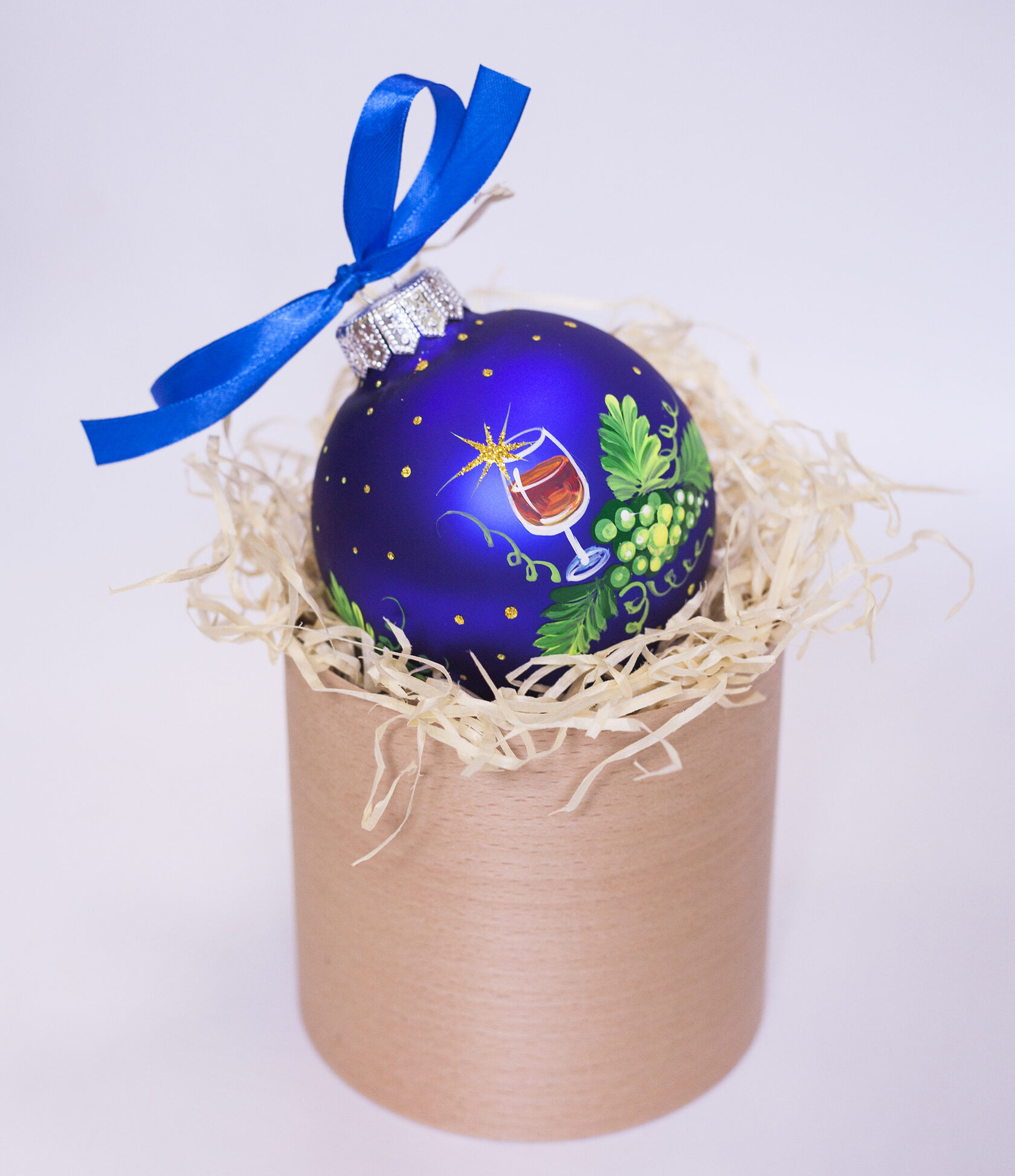 Пакування: подарунковий тубус із стрічкою, наповнений соломою.