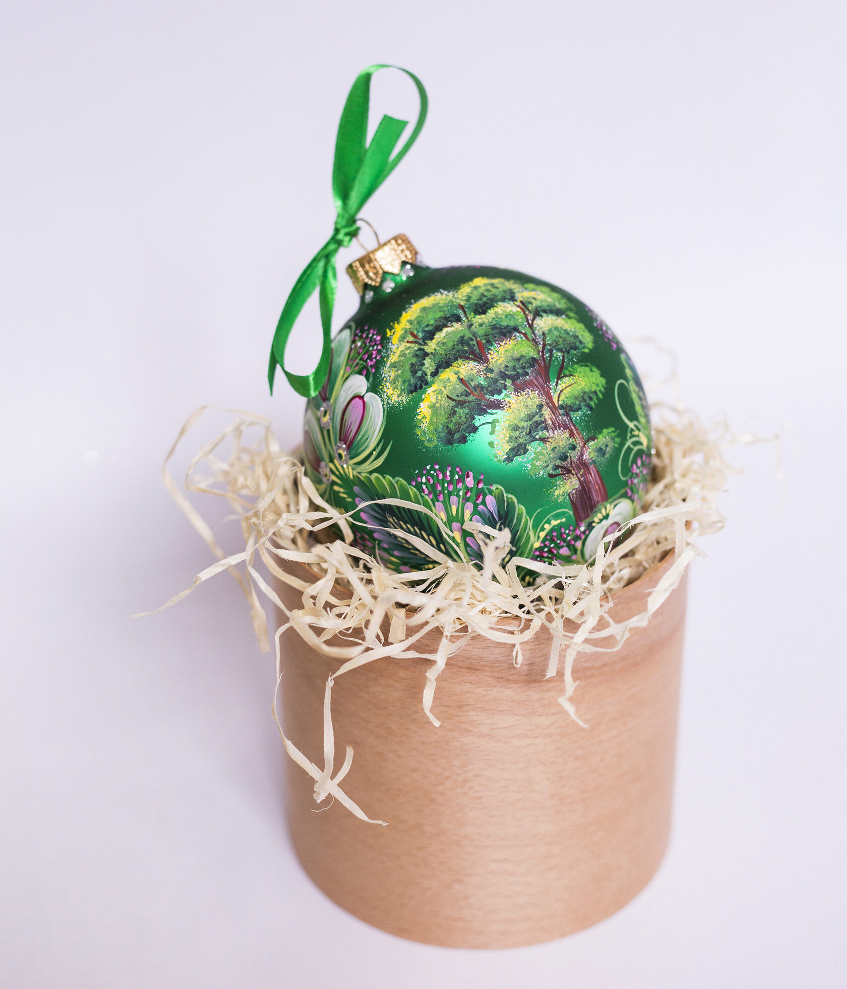 Пакування: подарунковий тубус із стрічкою, наповнений соломою.